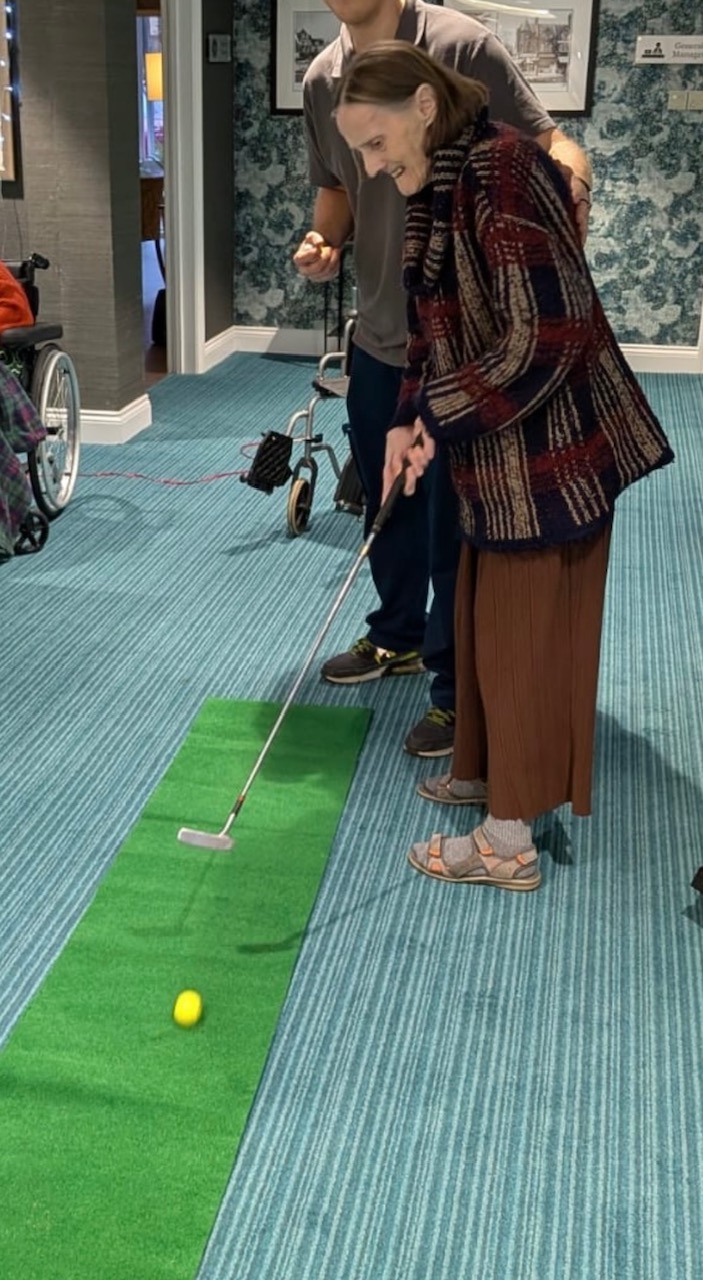 The residents of the home enjoyed a fun afternoon of golf in our Bistro area. We think Tiger Woods would be impressed by some of their putting skills. We will be holding more sporting themed events in 2026 as this has been very popular among residents , guests and the staff.