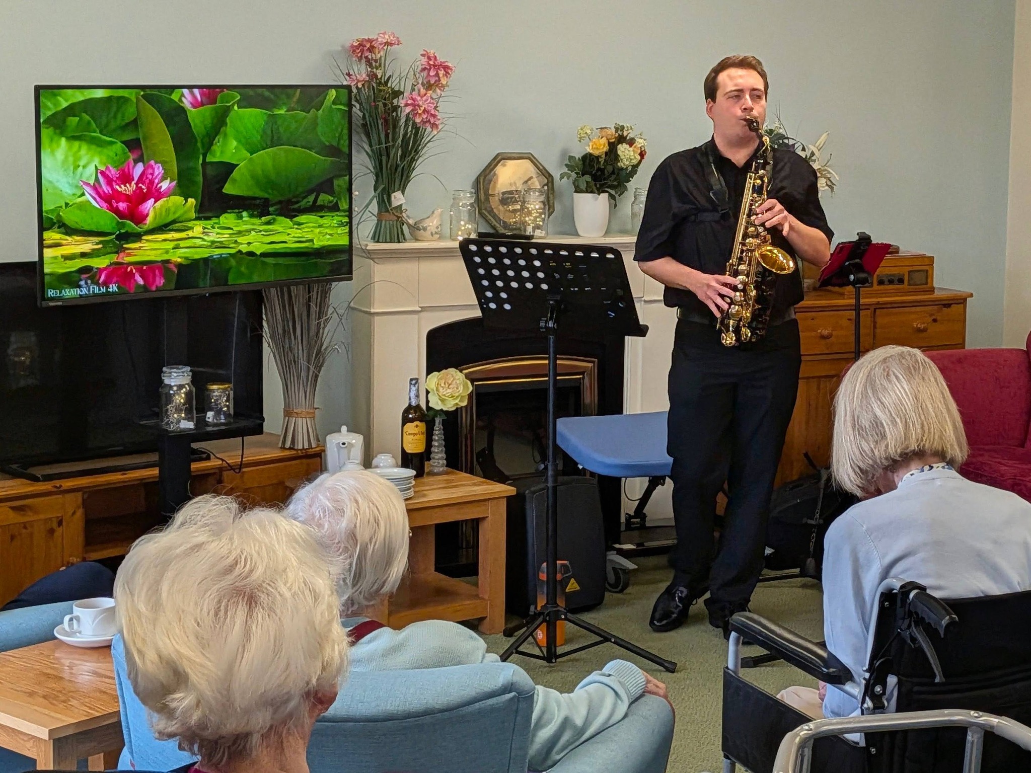 She treated our residents to a beautiful selection of both original and newly discovered poems, before handing over to Zachariah, who brought the morning to a close with a captivating saxophone performance.