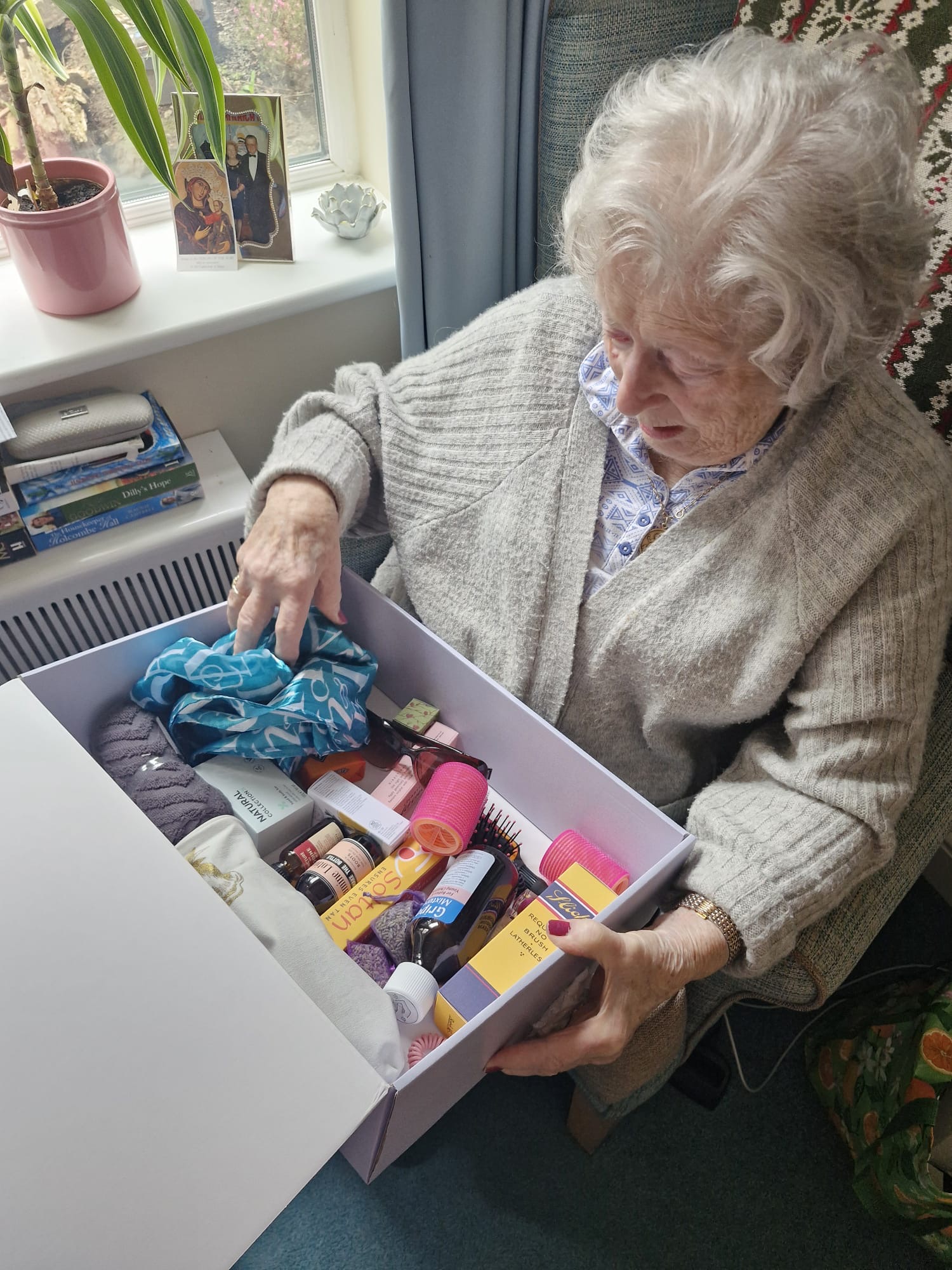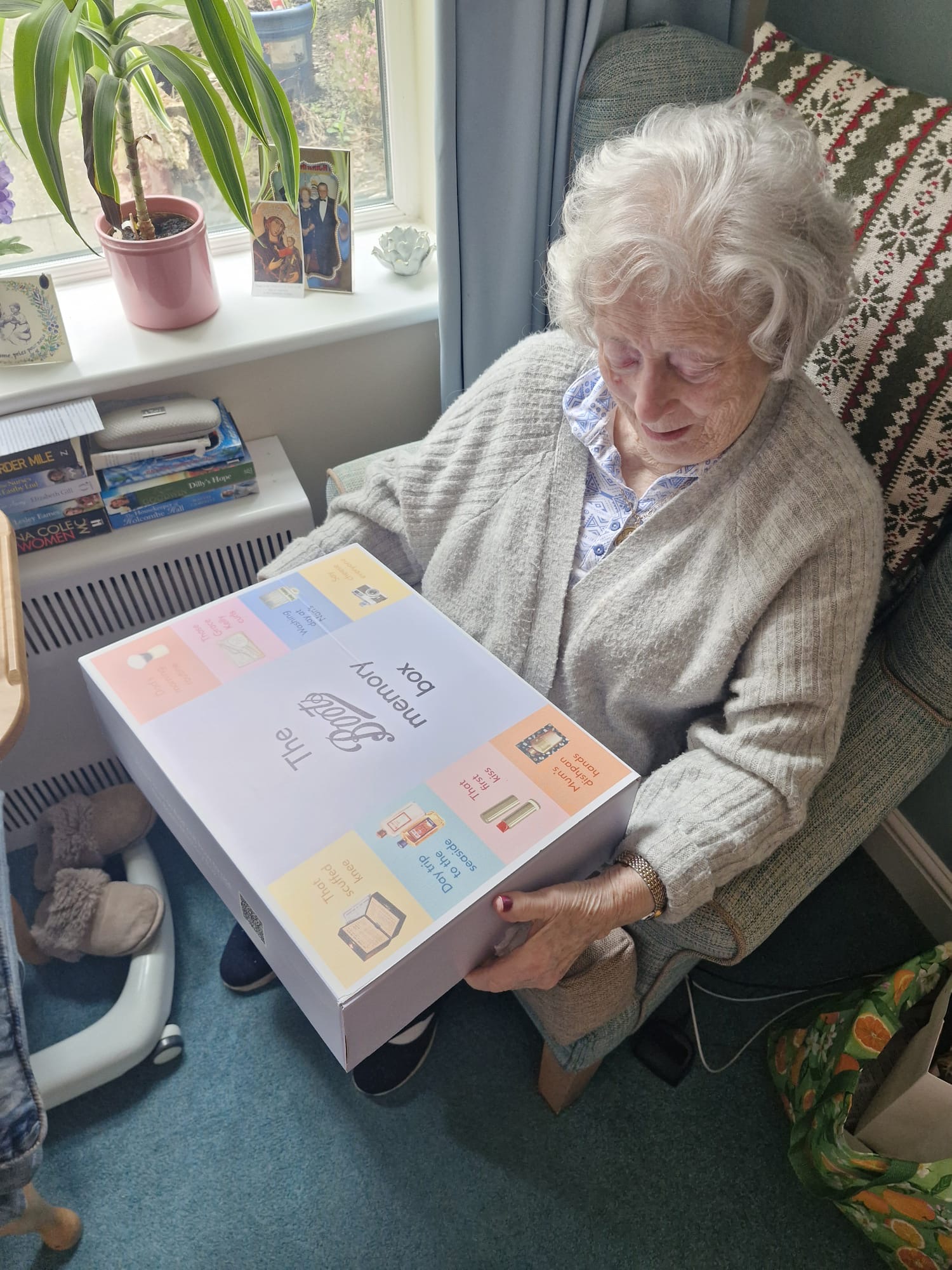 A number of familiar, nostalgic items such as vintage toiletries, old photos, and sensory objects like powder compacts were all explored. We are so grateful to Boots UK for granting Cookridge Court a lovely memorable box for our residents to use. It was a lovely morning enjoyed by all.
