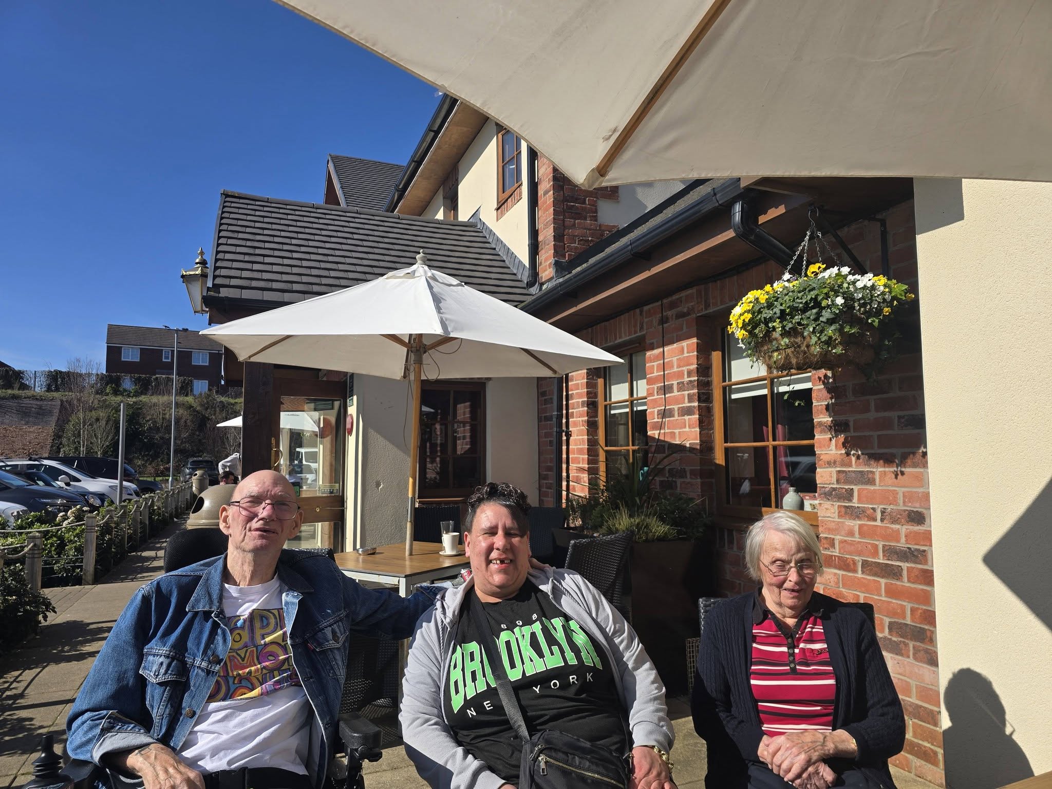 Residents take part in daily walks for fresh air and exercise, with the chance to sit and enjoy afternoon tea, a chat and the super weather.