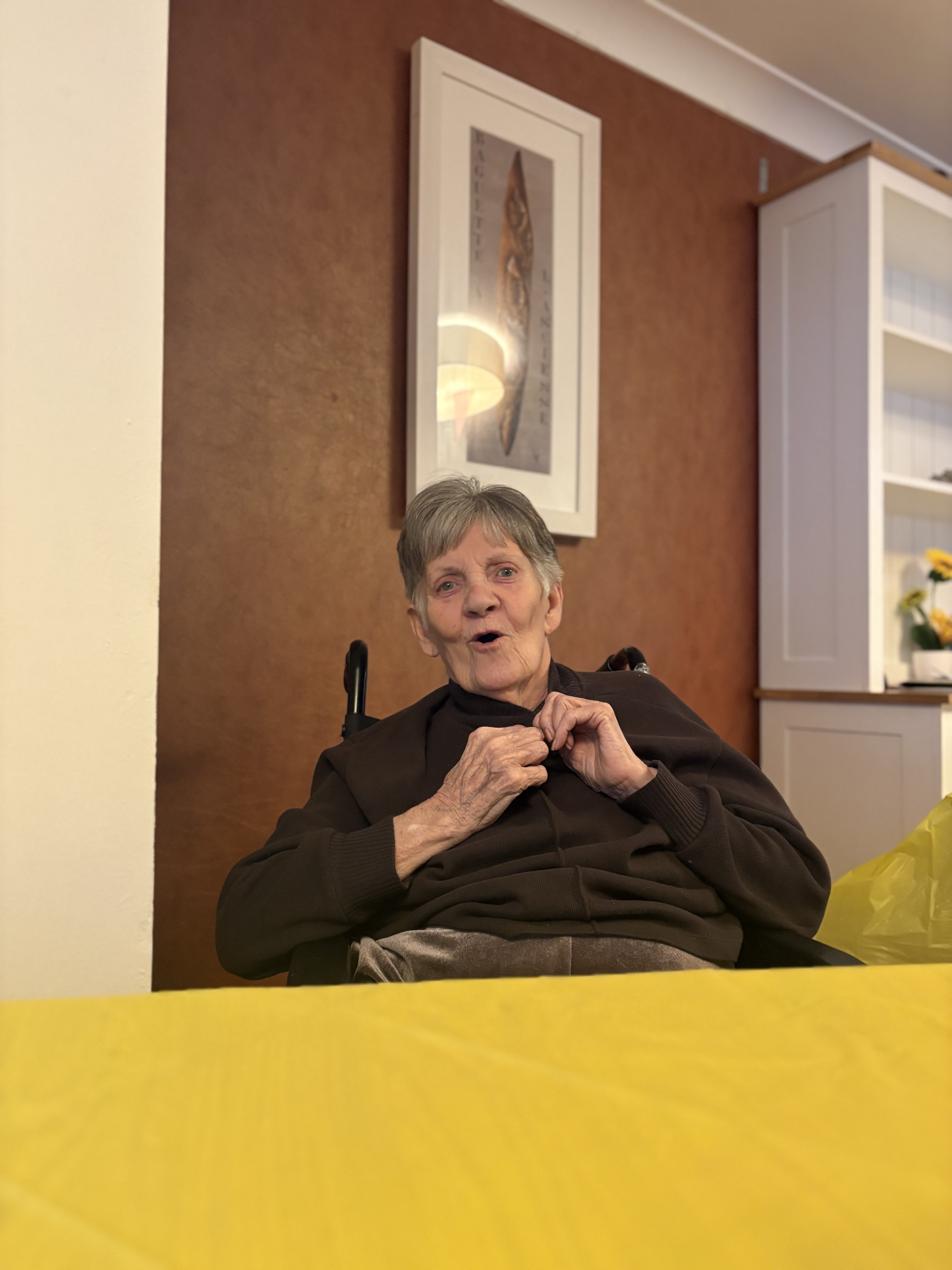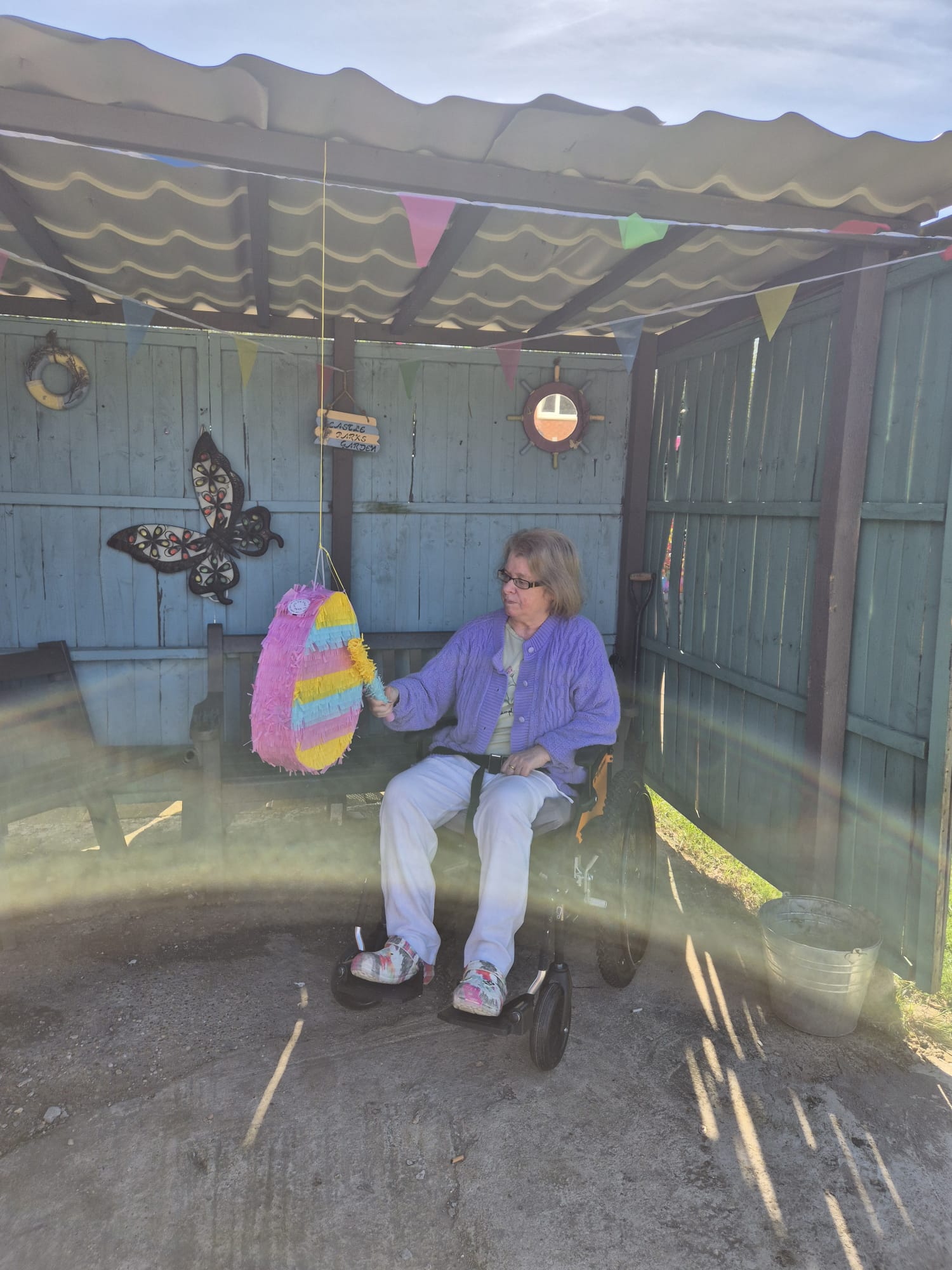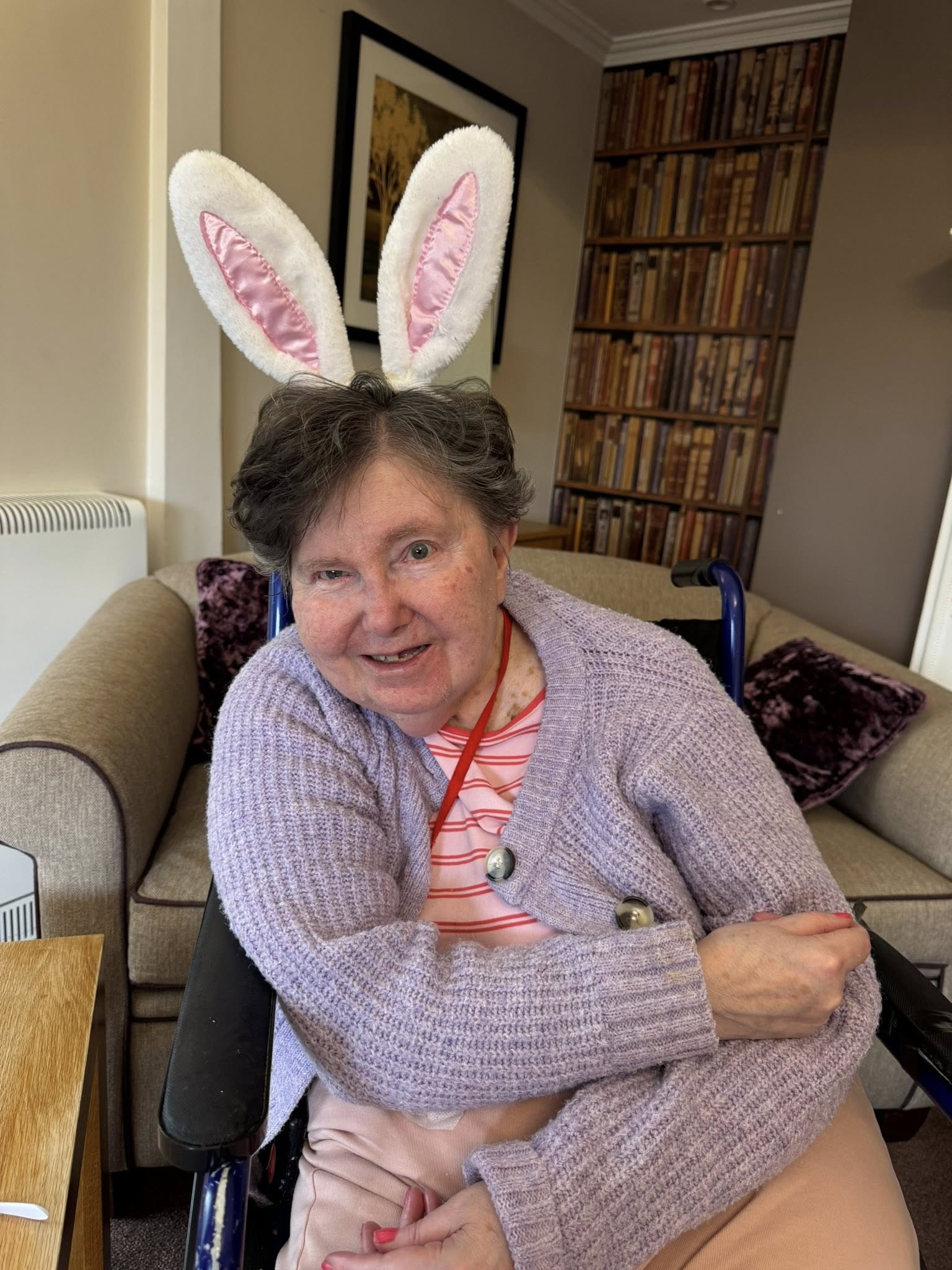 Edna, a resident, absolutely loved being out in the sunshine taking part in the bunny hunt—it was so lovely to see her enjoying every moment!