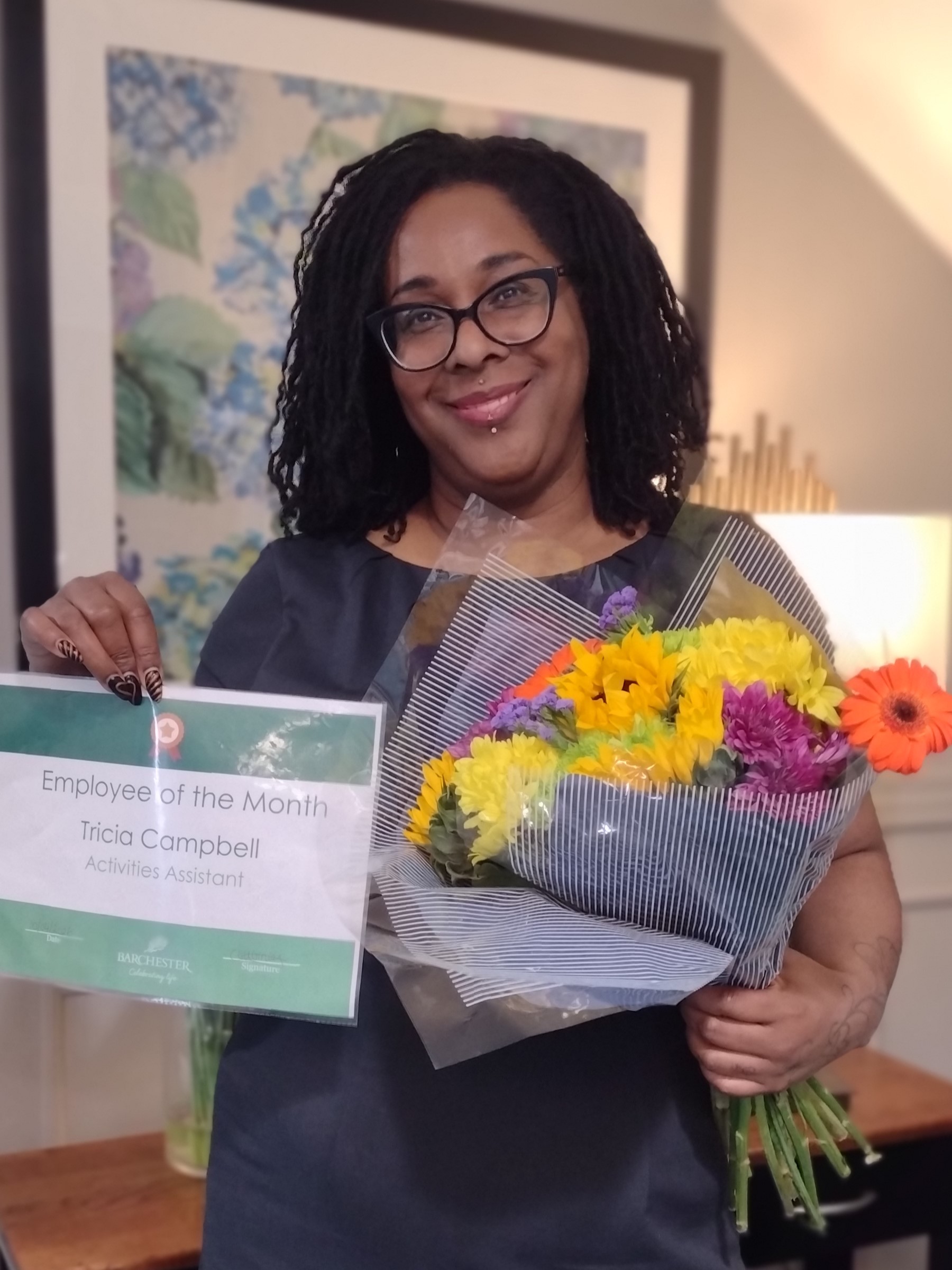 Residents and colleagues of Activities Assistant; Tricia Campbell wanted to congratulate her on receiving employee of the month for March 2026. Tricia has been instrumental in the implementation of the homes weekly 'Wellness Wednesdays'. She, alongside home manager Joanna together turn Claremont Parkway into a place of tranquillity every Wednesday, with Tricia providing foot spas and Joanna reflexology massages.