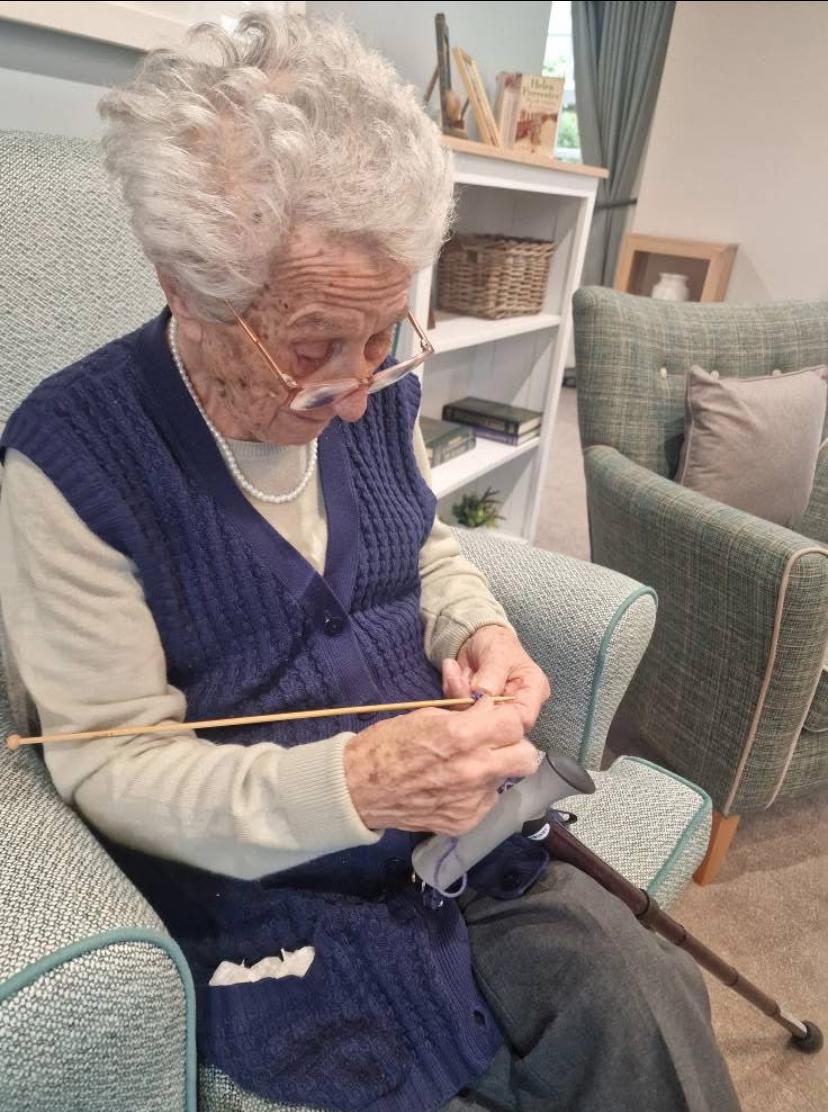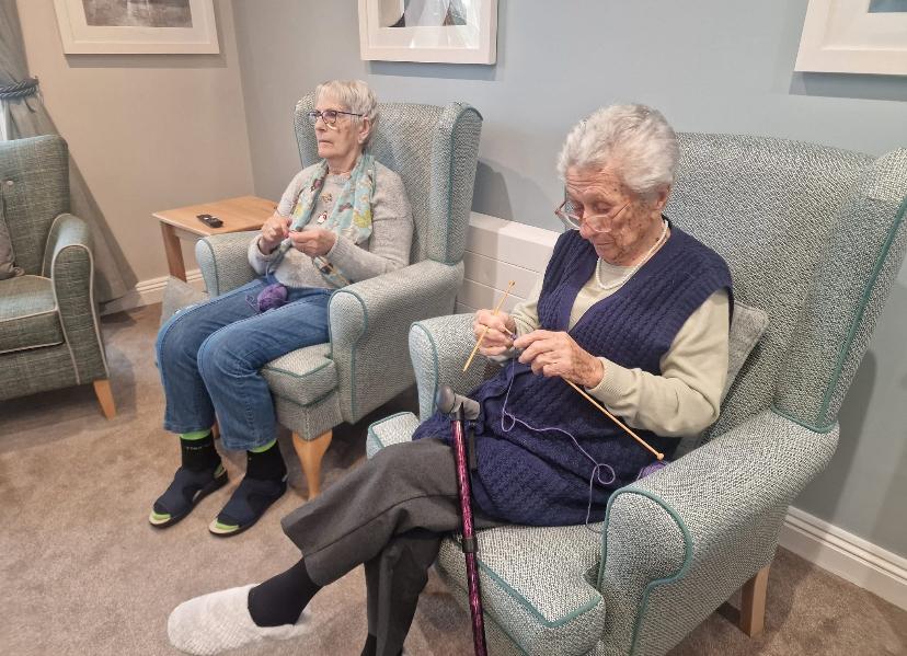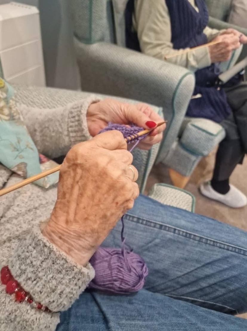 What a delightful sight it was to witness our residents knitting and chatting away! It was heartwarming to see them effortlessly slip back into a beloved pastime, as if they had never stopped. They didn't even need to glance at their needles or yarn once they got into the groove. It was a peaceful and rejuvenating afternoon, with the added pleasure of watching TV while indulging in their creative pursuits.