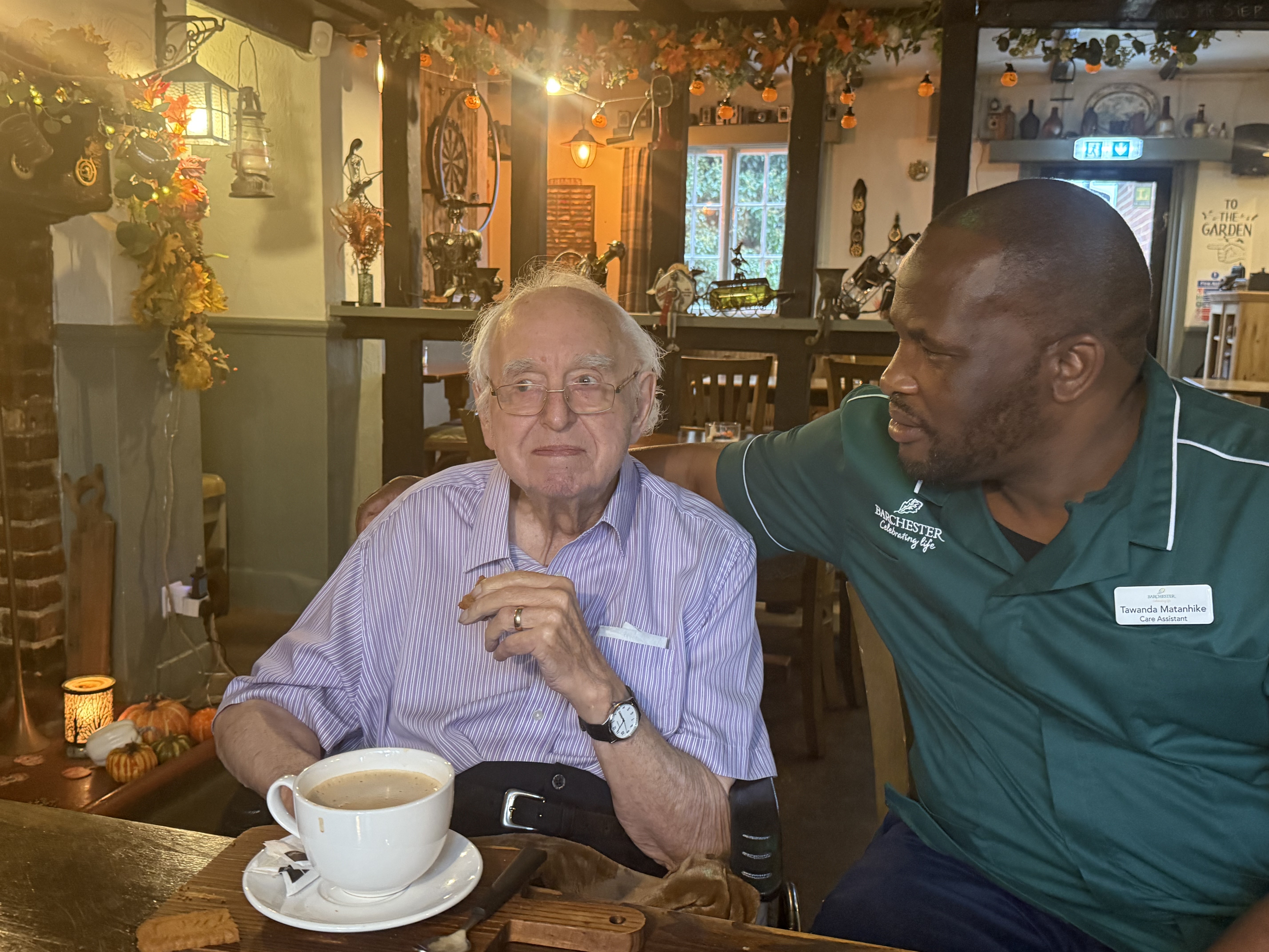 This week, we had the pleasure of taking our wonderful resident Brian on a seasonal outing to the Saddlers Arms, a local pub beautifully adorned with autumn and Halloween decorations.
