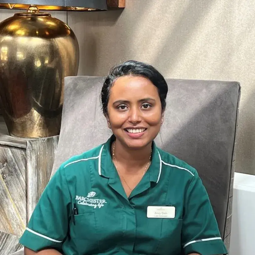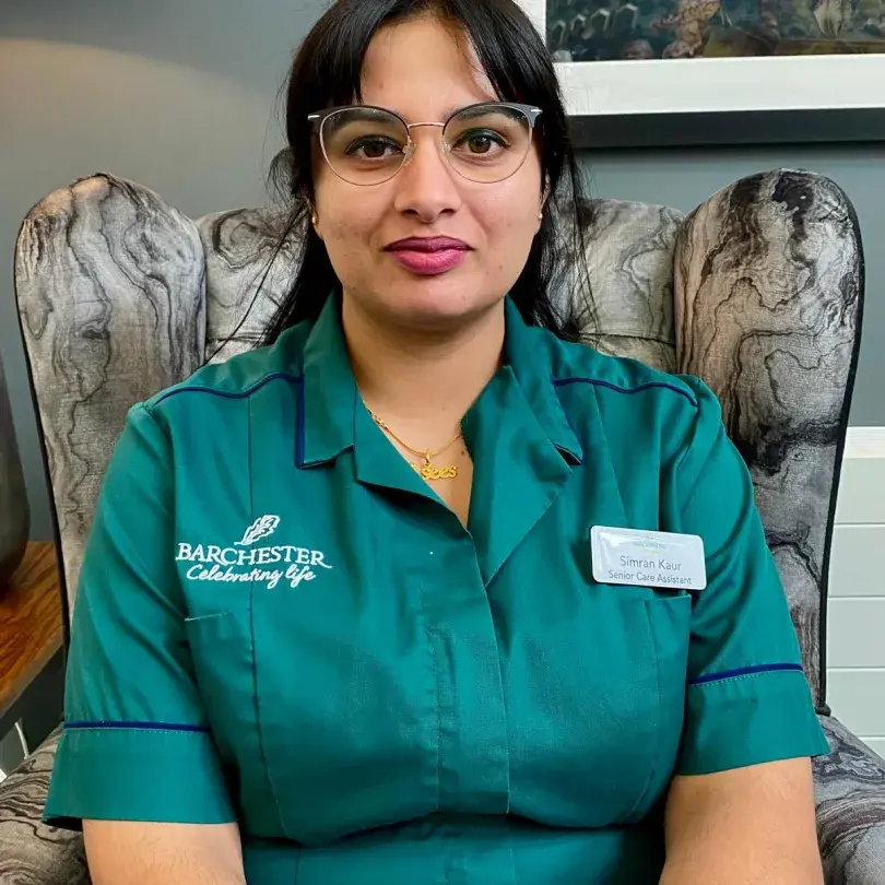 Hello, I'm Simranjeet, one of the Senior Care Assistants at the home. I've been part of the team since 2023 and just completed my NVQ level 3 in Health and Social Care, thanks to Barchester Healthcare. Before joining here, I was studying Business and Marketing at Bangor University in Wales, which I achieved my degree.I absolutely love working with the residents, building trust with each person and their families. Feeling supported and valued by the management and staff makes my job incredibly rewarding.Outside of work, I cherish spending time with my husband, daughter, and the rest of my family. We're big fans of outdoor park adventures and I have a real passion for cooking. It's all about undefined and making the most of every moment!