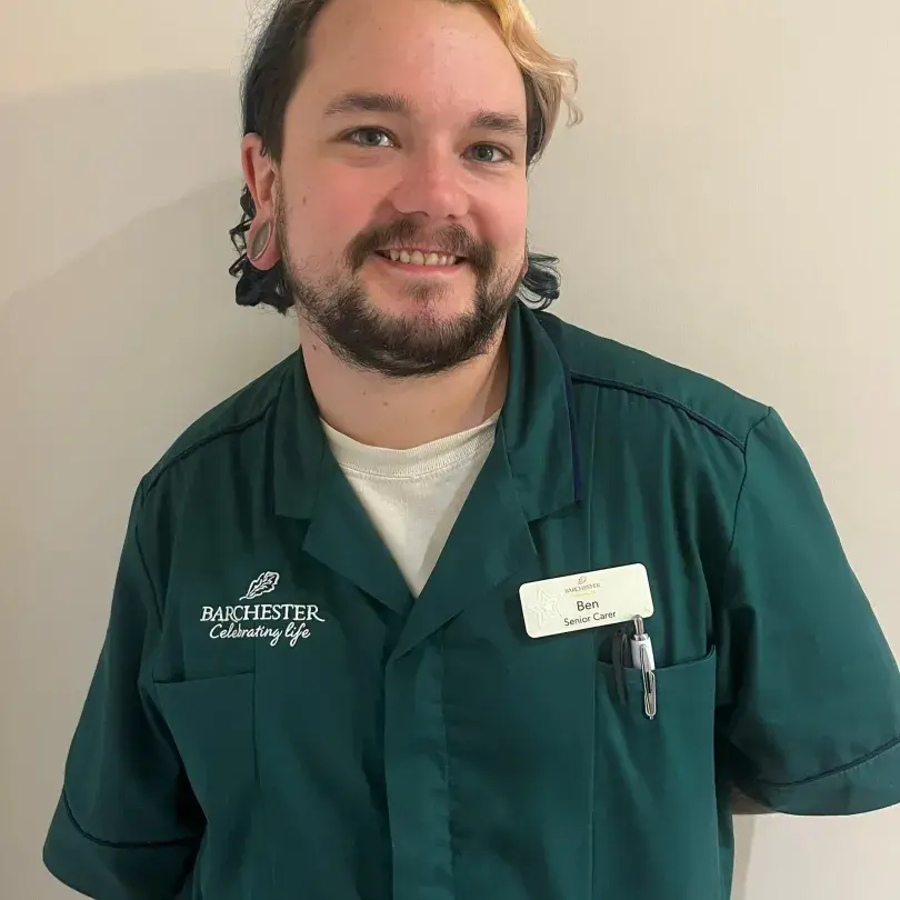 Hey, I'm Ben and I am a senior carer here at Mortain Place. I have over 7 years experience in the care industry, and have my level 3 qualification in Health & Social Care. The thing I love most about my job is enriching the lives of our residents in each and every way possible. Being a carer is not just about the care, it is everything else that goes with it. I love getting to know our residents and their families inside out and adding to their care plans to ensure the best possible care. In my spare time I enjoy going to concerts with friends.
