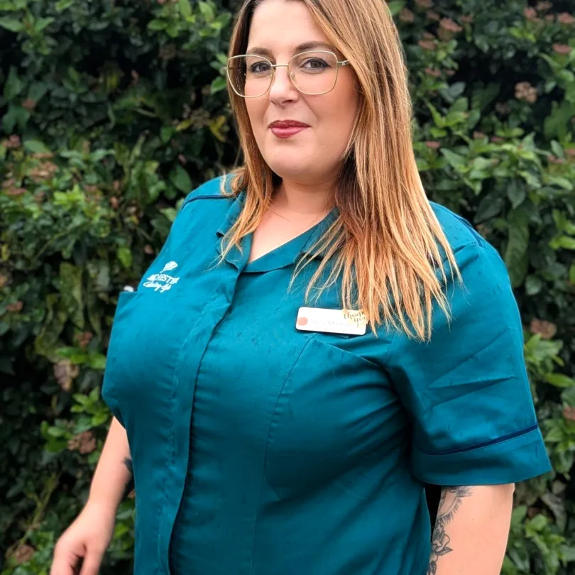 Hello, I’m Kayleigh and I am the dementia lead specialist nurse on our Ty Lliw community at Hafan-Y-Coed.I started here in 2017 as a care assistant and became passionate about providing high-quality person-centred care to residents living with dementia. My ambition was to become a registered mental health nurse and I qualified in February 2024.