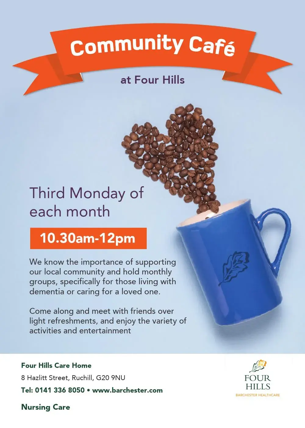 Four Hills Care Home offers Nursing care, Respite / Short stay, Dementia care.