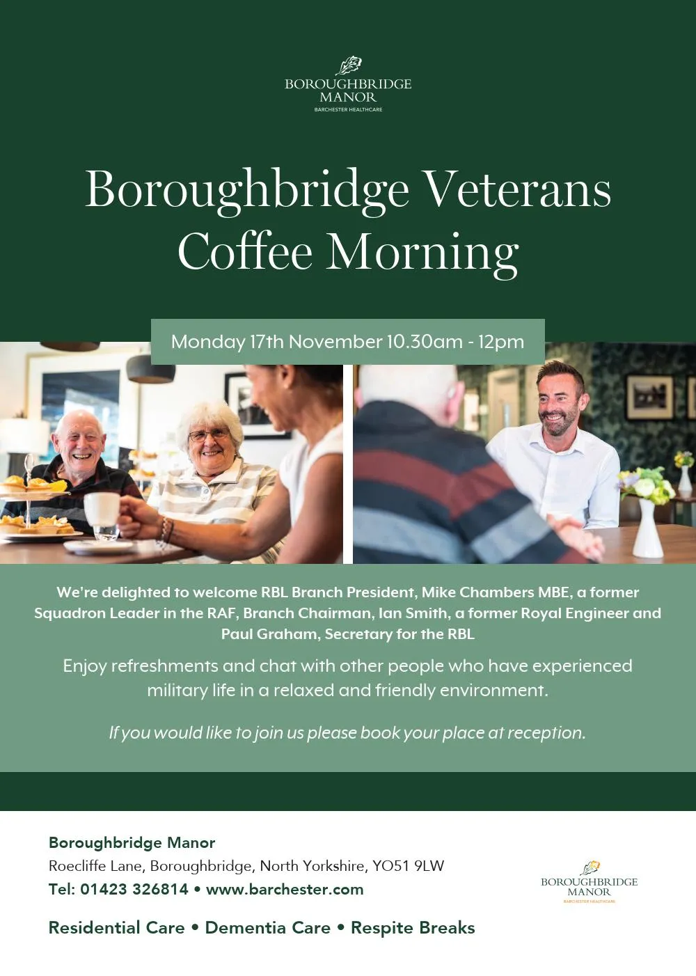 The home in Boroughbridge was delighted to welcome local police officers PC Barrett and PCSO Booth as they joined the residents and relatives for a for their ‘Coffee with a Coppa’ event on Monday 29th September