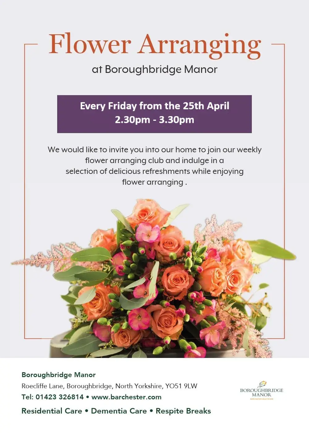 Boroughbridge Manor Care Home offers Residential care, Dementia care, Respite / Short stay.
