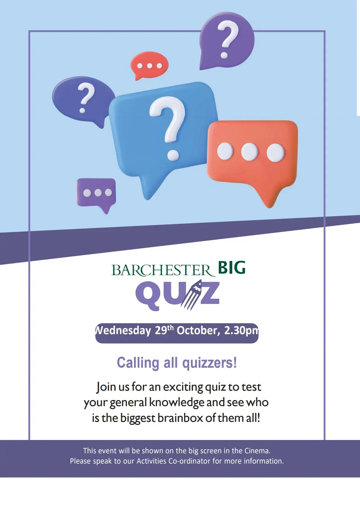 Residents and staff had an absolute blast this afternoon at the Big Quiz, going head-to-head with other Barchester homes in a fun-filled competition! Everyone put on their thinking caps to flex their knowledge and see how they stacked up against our fellow Barchester sister homes, all thanks to our awesome Live Virtual Events team.