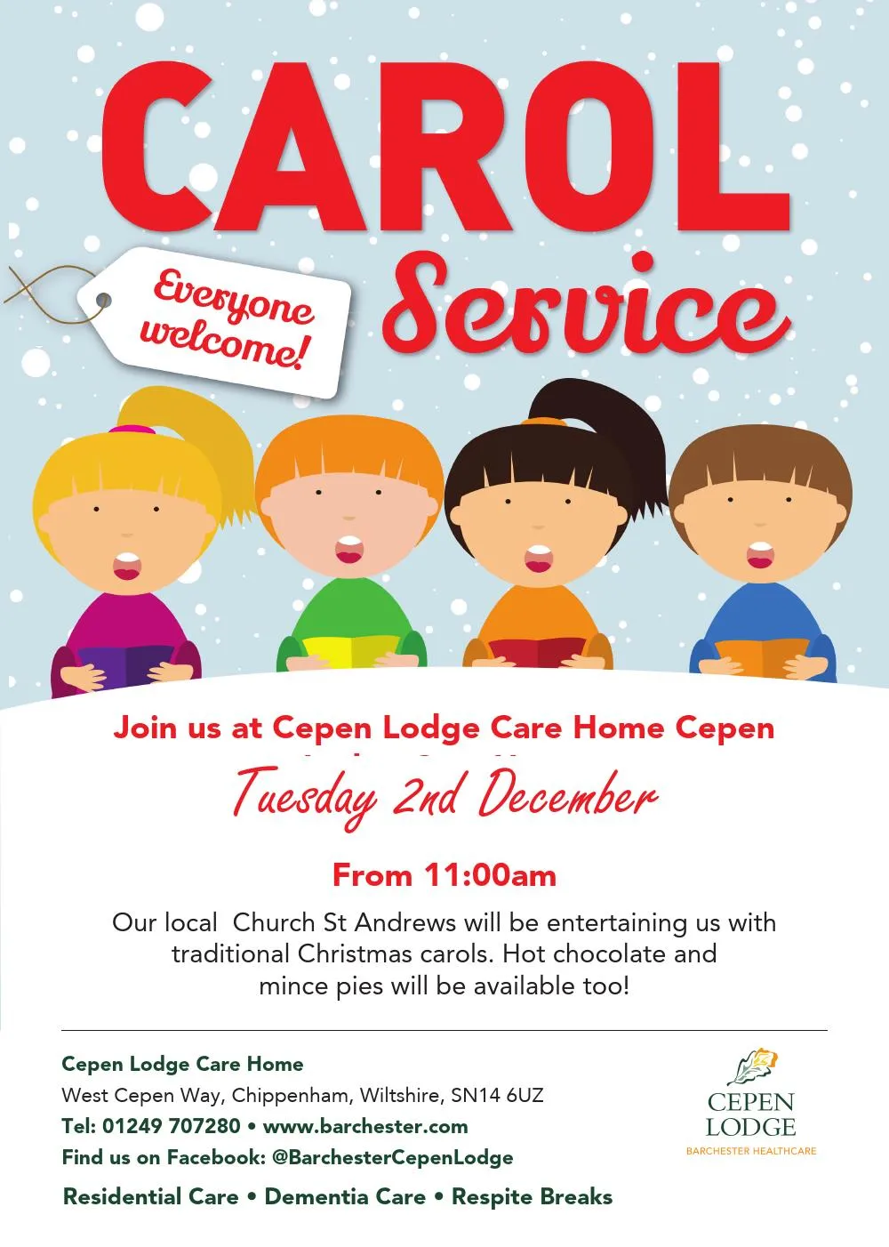 As we approach the eleventh day of November we welcome all veteran's and the local community to join us at Cepen Lodge for our own Remembrance Church Service followed by High Tea. To book your place at our table please call the home team on 01249 707280 we look forward to welcoming you.