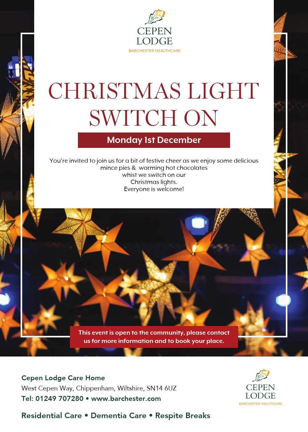 As we approach the eleventh day of November we welcome all veteran's and the local community to join us at Cepen Lodge for our own Remembrance Church Service followed by High Tea. To book your place at our table please call the home team on 01249 707280 we look forward to welcoming you.