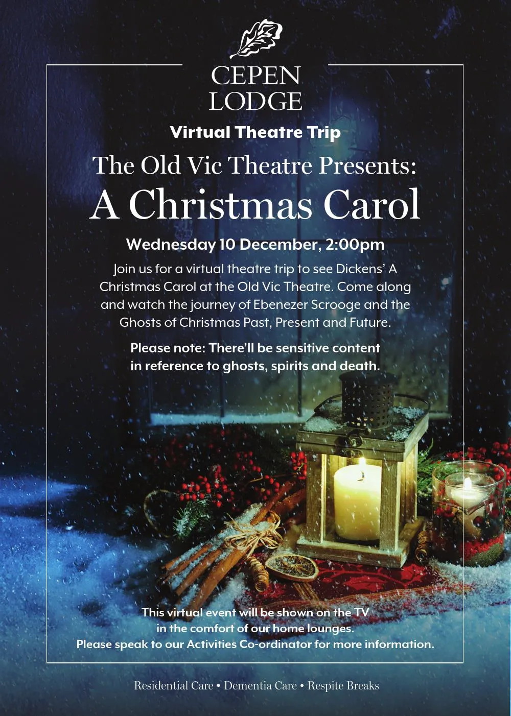 As part of our bespoke life-enrichment programmes, we host a number of live virtual events in the home on a regular basis through a number of partnerships with places of interest and world class performance companies