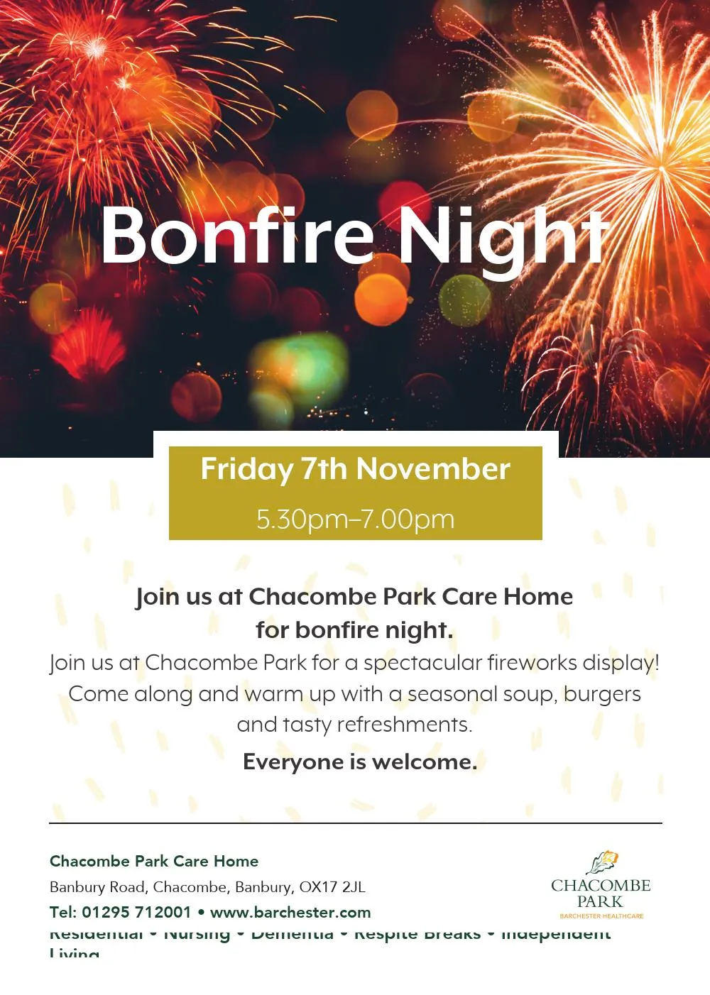 Chacombe Park Care Home offers Nursing care, Residential care, Dementia care, Respite / Short stay, Independent living apartments.