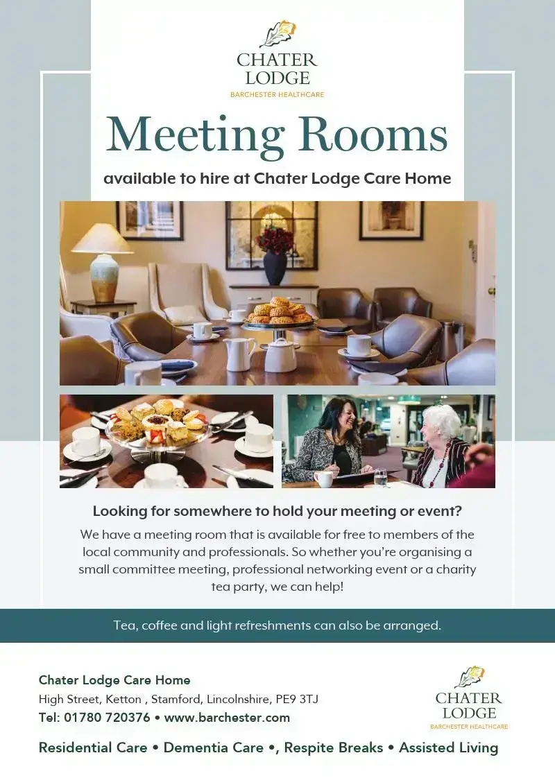 Chater Lodge Care Home offers Residential care, Dementia care, Respite / Short stay.