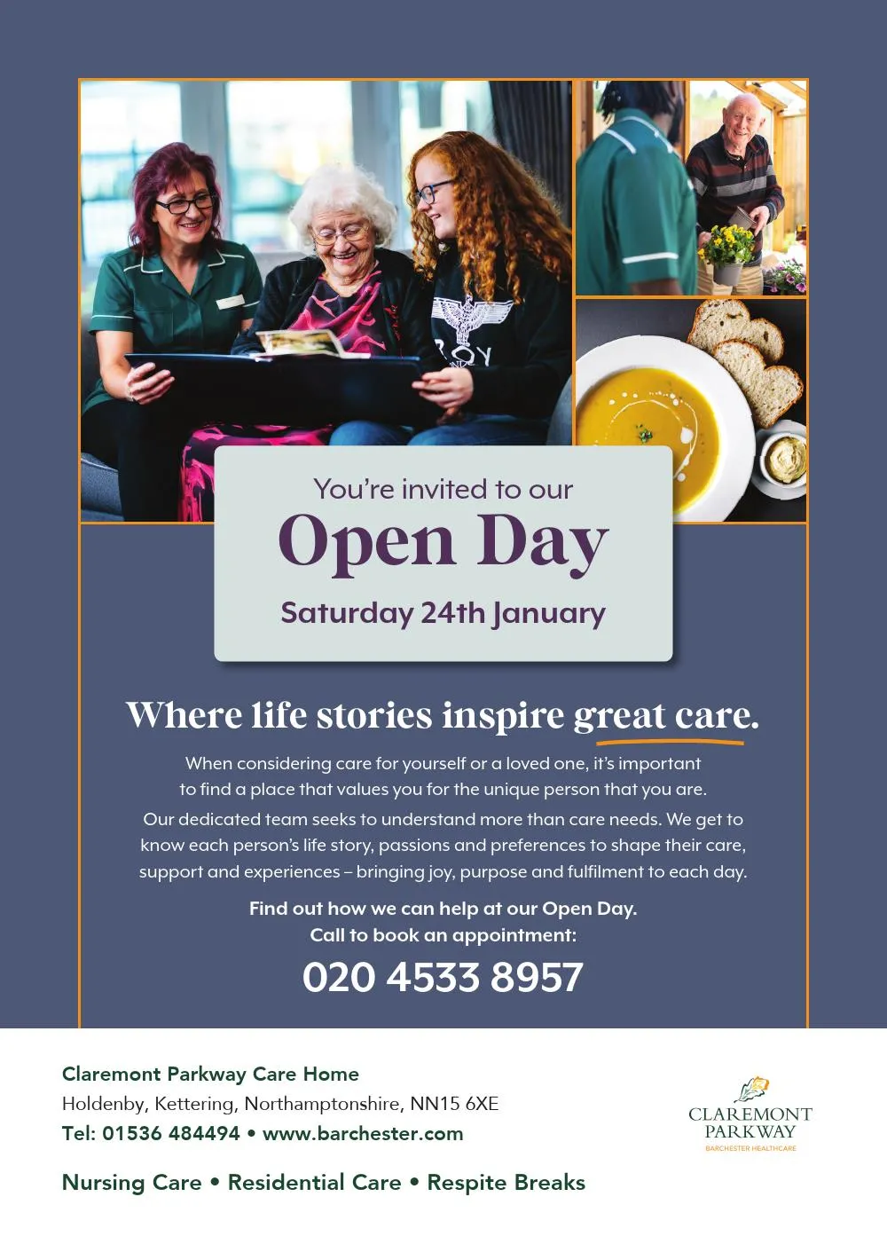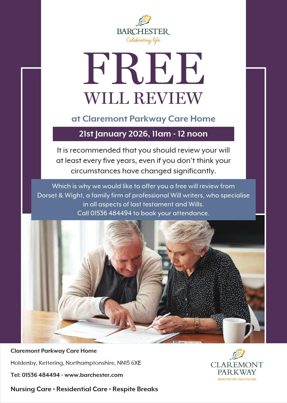 I look forward to getting to know you and your loved ones. We are always open to new ideas, if you'd like to contact me please call the home on 01536 484494 or email me direct on ClaremontParkway.Activities@barchester.com - New entertainers always welcome.
