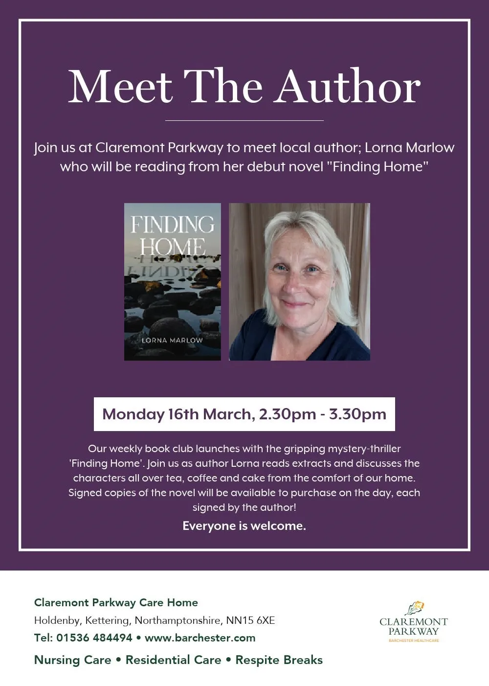 Hello, my name is Karen and I'm the activities coordinator for Claremont Parkway.