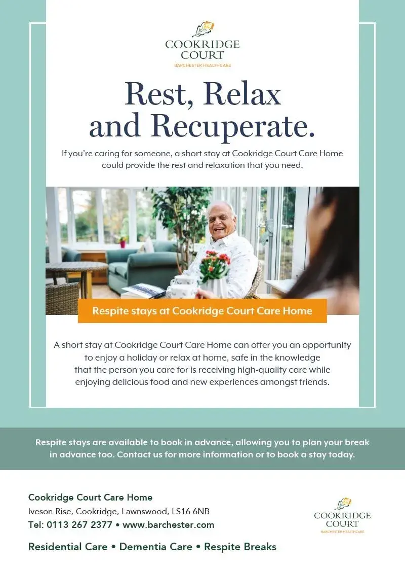 Cookridge Court Care Home offers Residential care, Dementia care, Respite / Short stay.