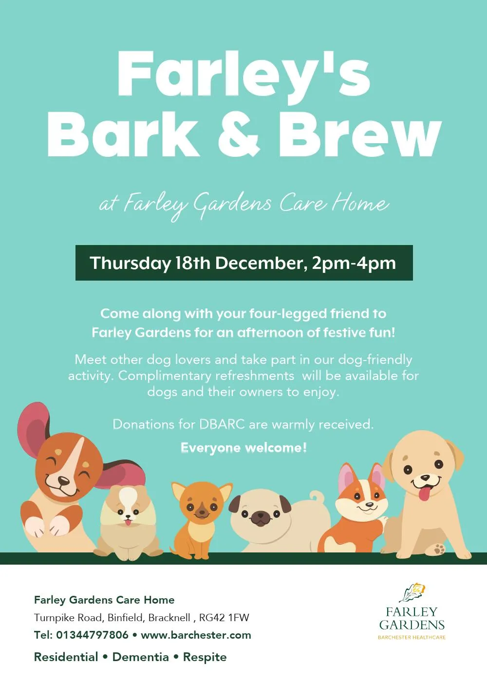 A huge thank you to the fabulous owners - and of course our star pups Honey, Dora, Polly, Monty, Fred & Joey - for bringing their waggy charm to Farley Gardens.