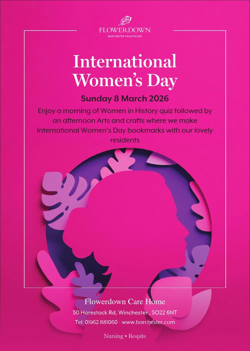 Enjoy a morning of Women in History quiz followed by an afternoon Arts & Crafts where we make International Women's Day book marks with our lovely residents.