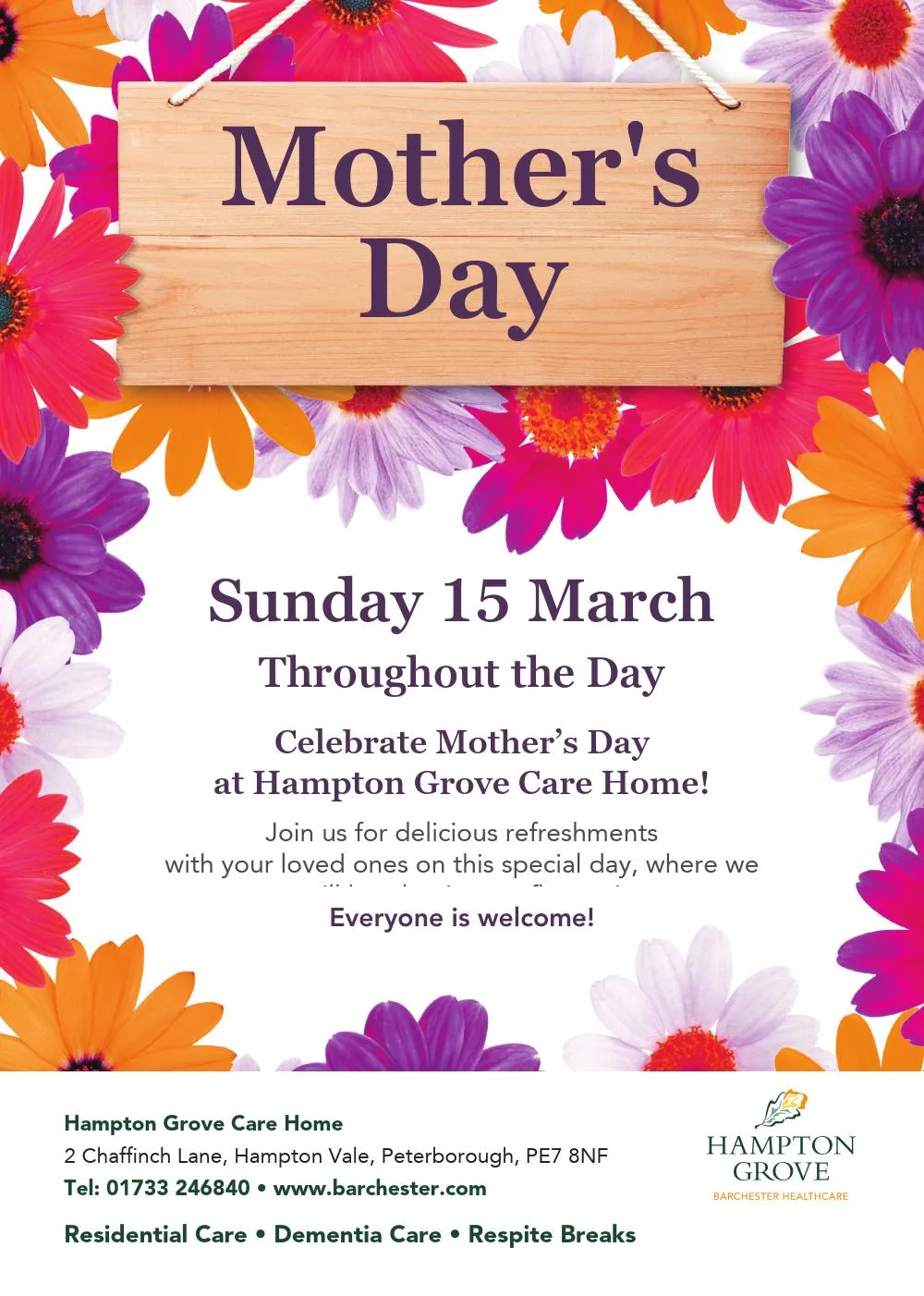 Read our brochureCelebrating life at Hampton Grove Care Home