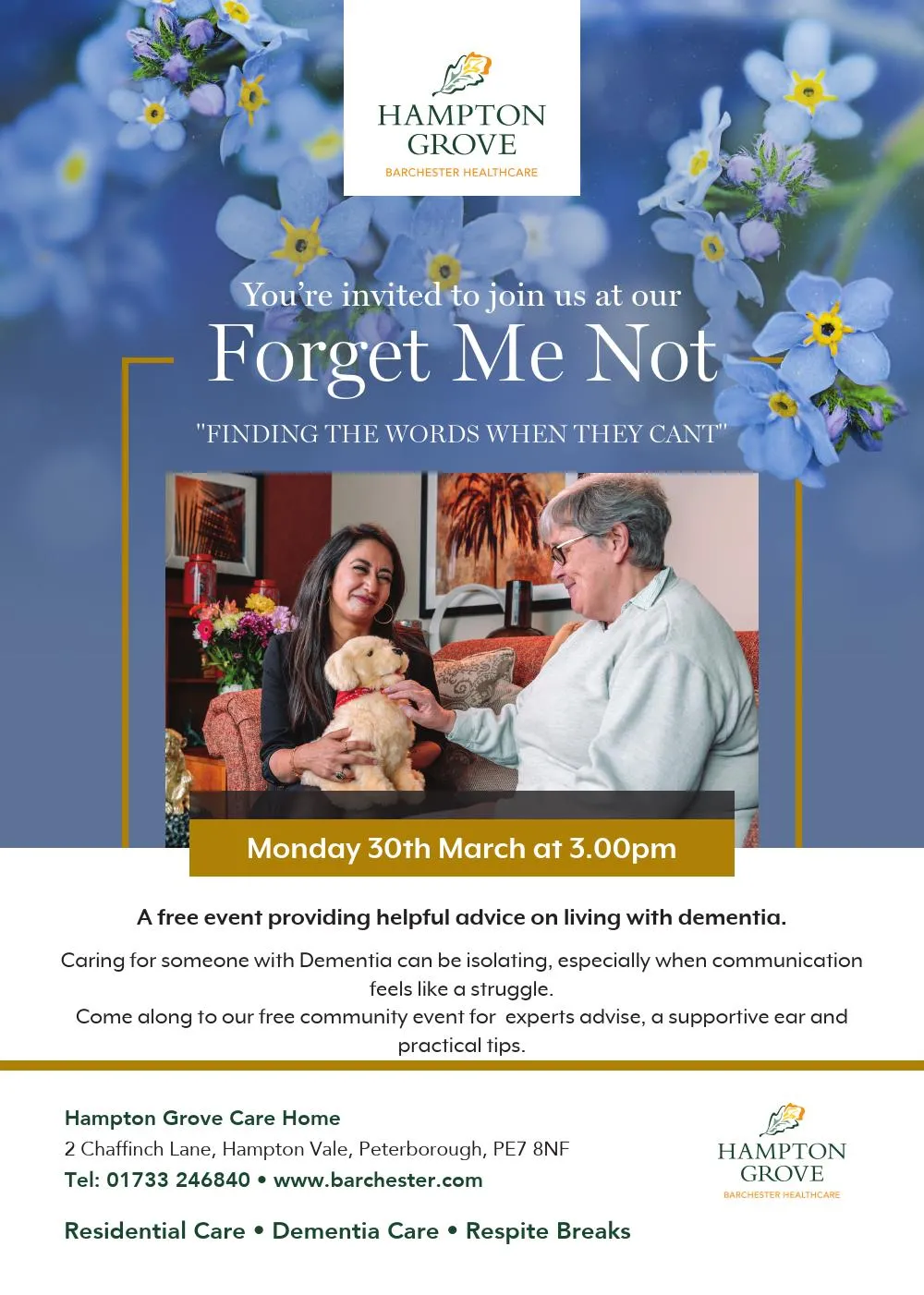 To support local families navigating similar journeys, Hampton Grove invites the Peterborough community to a special event: "Talking Positively to Someone Living with Dementia." Taking place at the end of the Month, this session will offer practical advice, emotional support, and insights into maintaining meaningful connections when verbal communication becomes difficult.