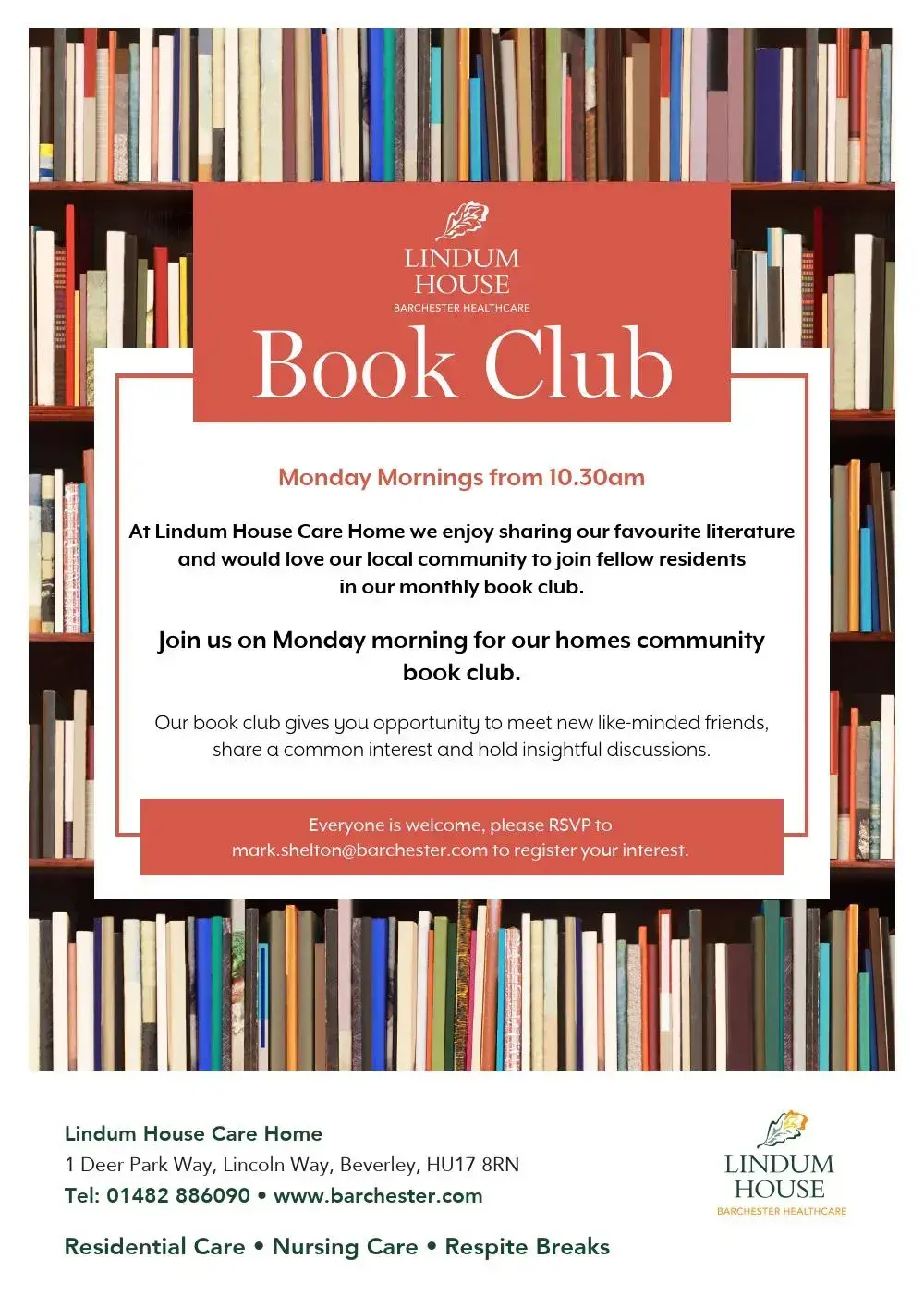 The sessions take place every Monday at 10:30am, offering a warm and welcoming space for book lovers to come together, share their thoughts, and enjoy lively discussions over a cup of tea and a slice of cake, courtesy of the home’s hospitality team.