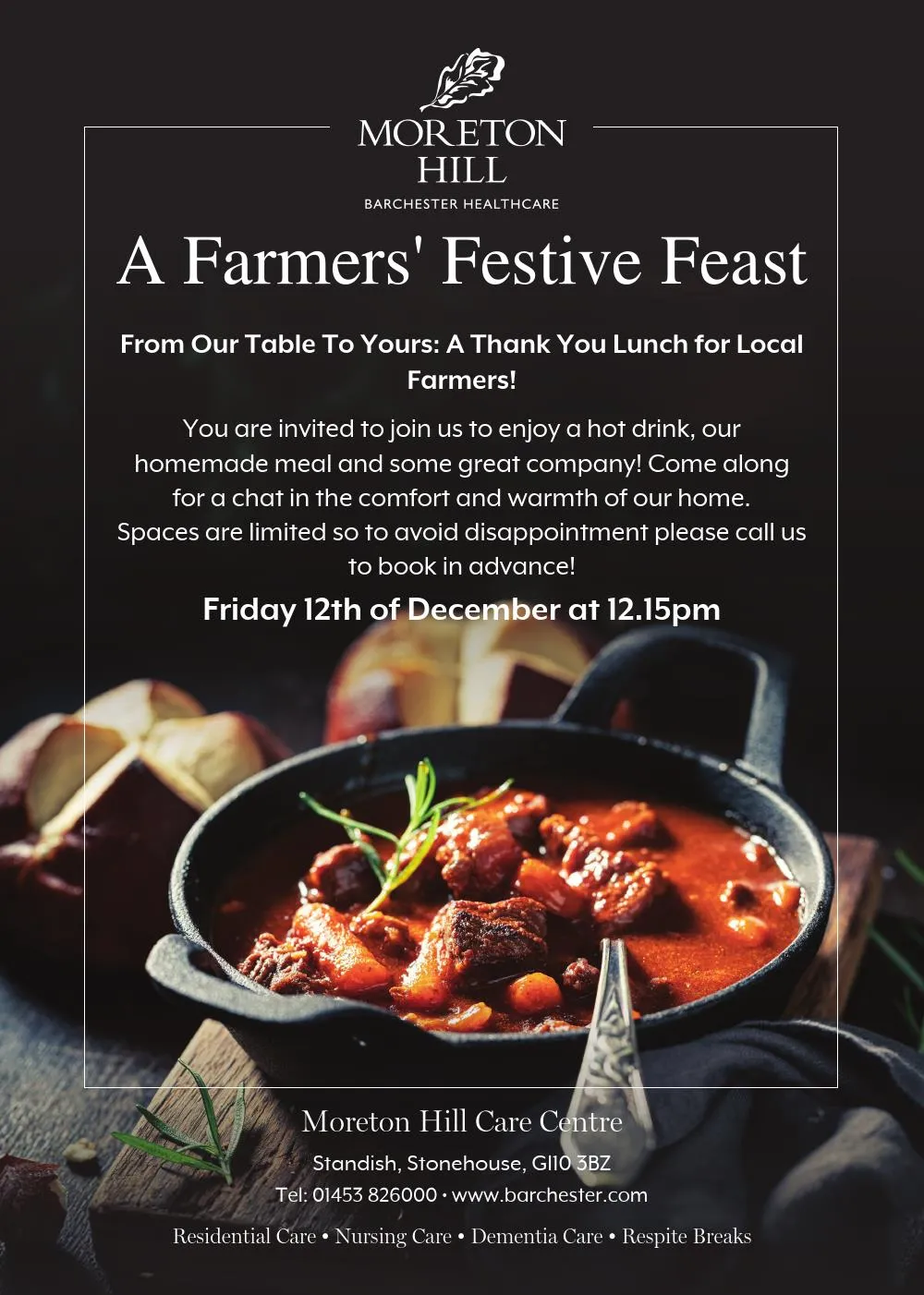 We would like to invite local Farmers to join us for a festive feast! Enjoy a delicious three-course meal in a company of like- minded people!