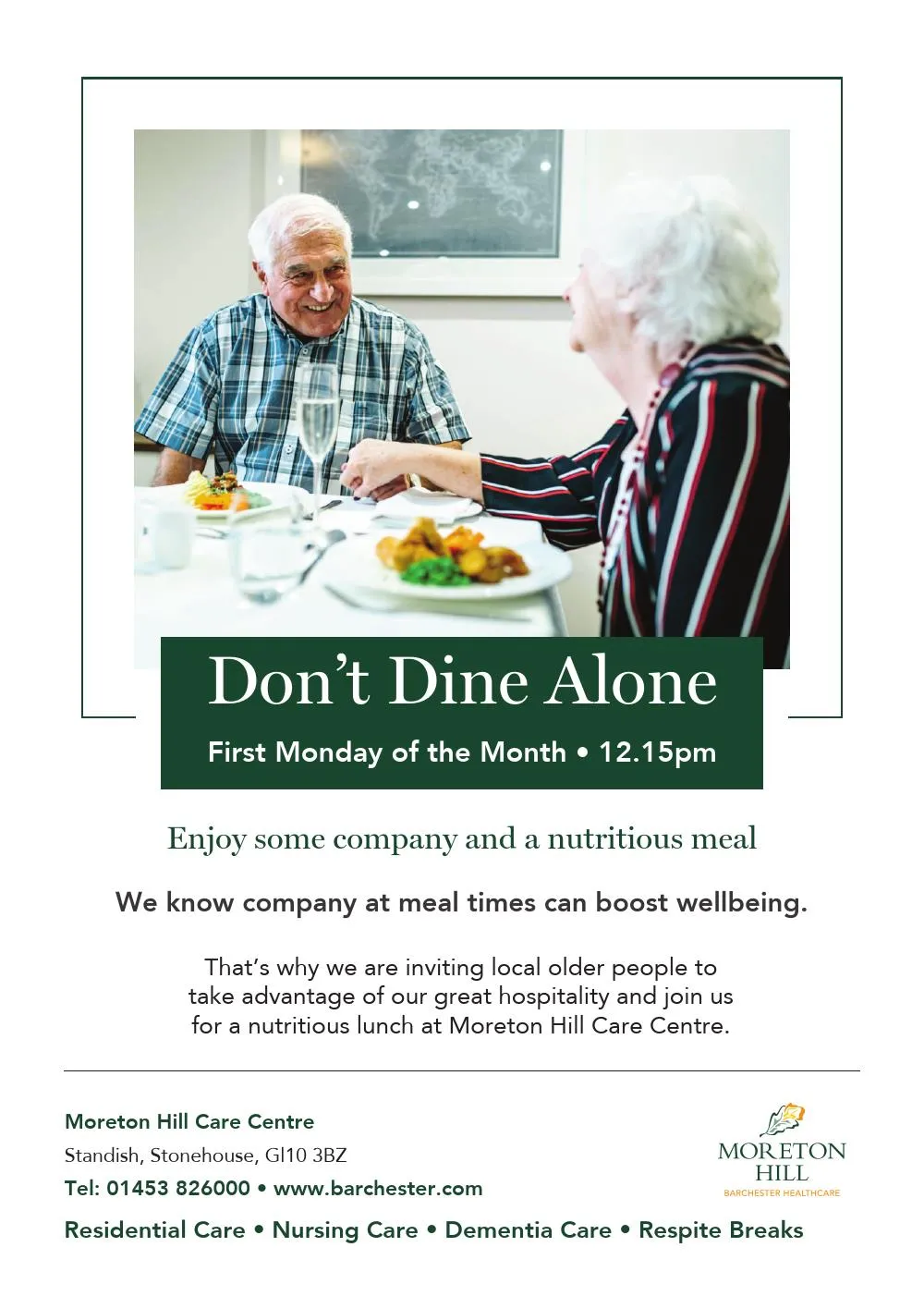 Moreton Hill Care Home offers Residential care, Nursing care, Dementia care, Respite / Short stay, Services for under 65.