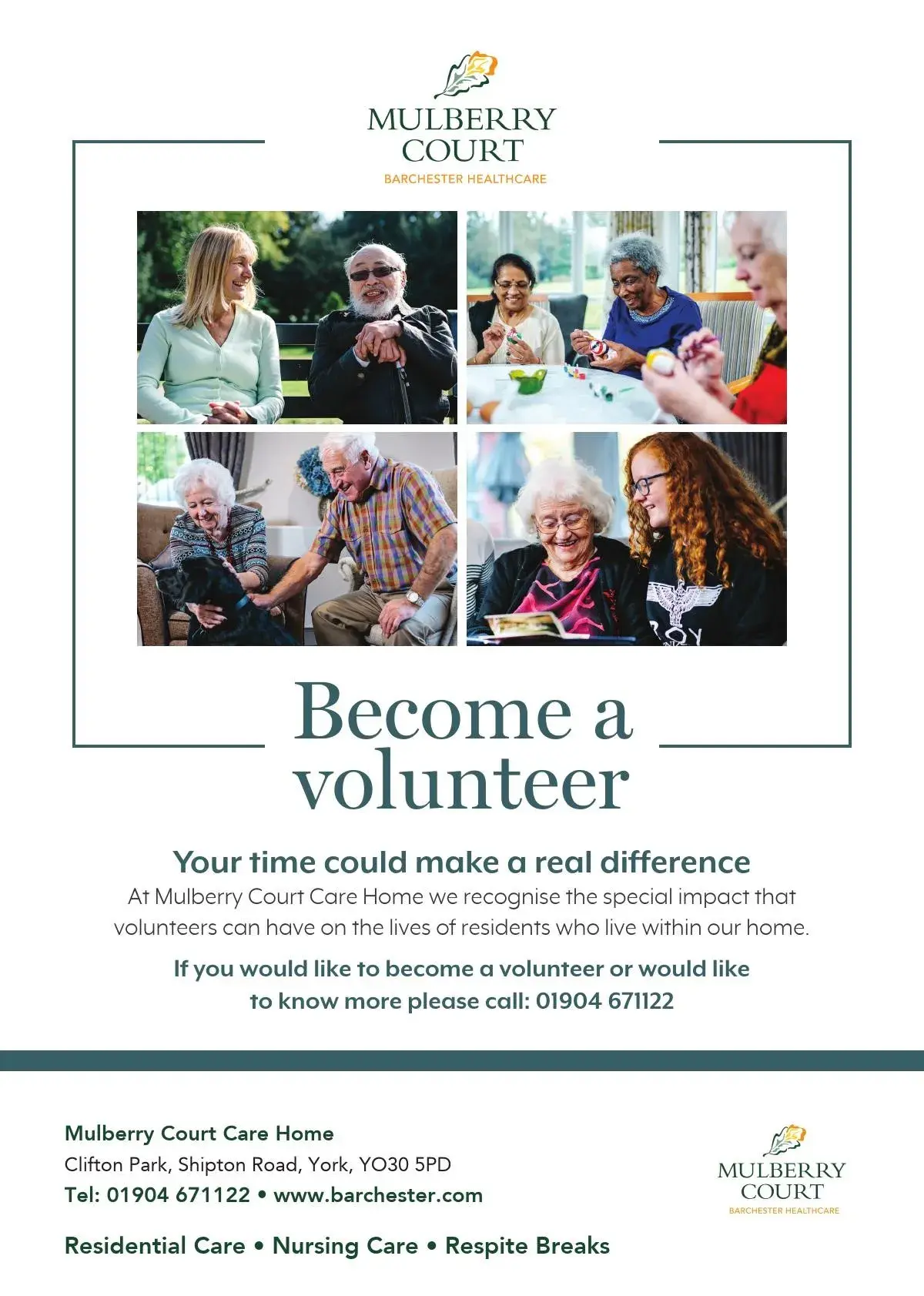 Mulberry Court Care Home offers Nursing care, Residential care, Respite / Short stay.