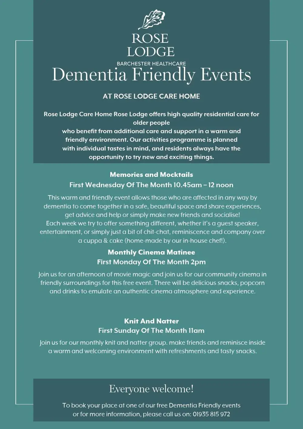 Rose Lodge Care Home offers Residential care, Nursing care, Dementia care, Respite / Short stay, Services for under 65.