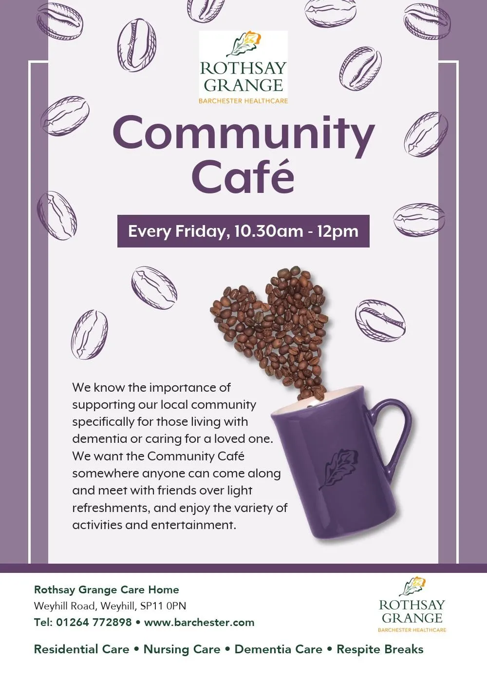 We know the importance of supporting our local community specially for those living with dementia or caring for a loved one. Come along to our community cafe.