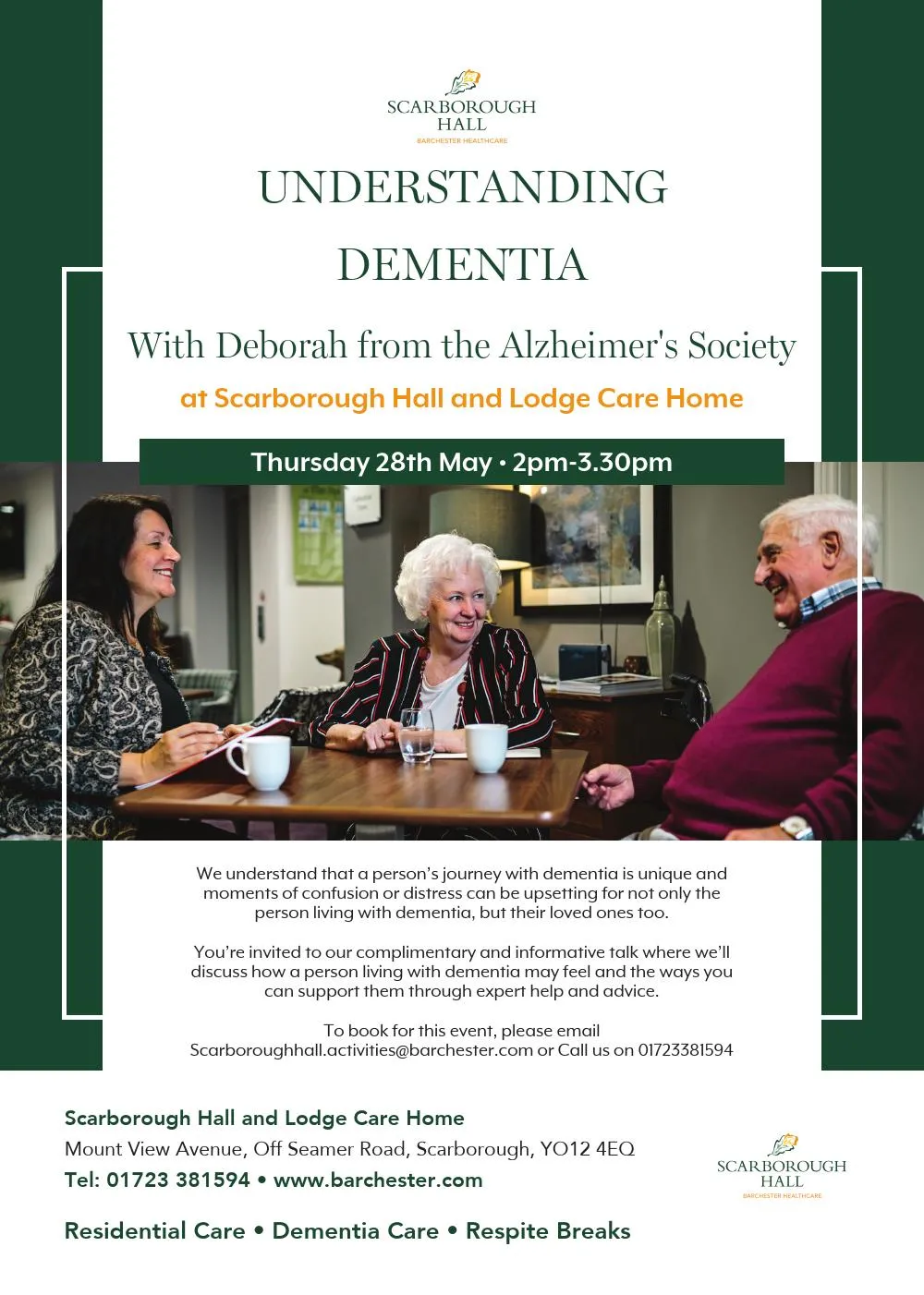 Scarborough Hall Care Home offers Residential care, Dementia care, Respite / Short stay.