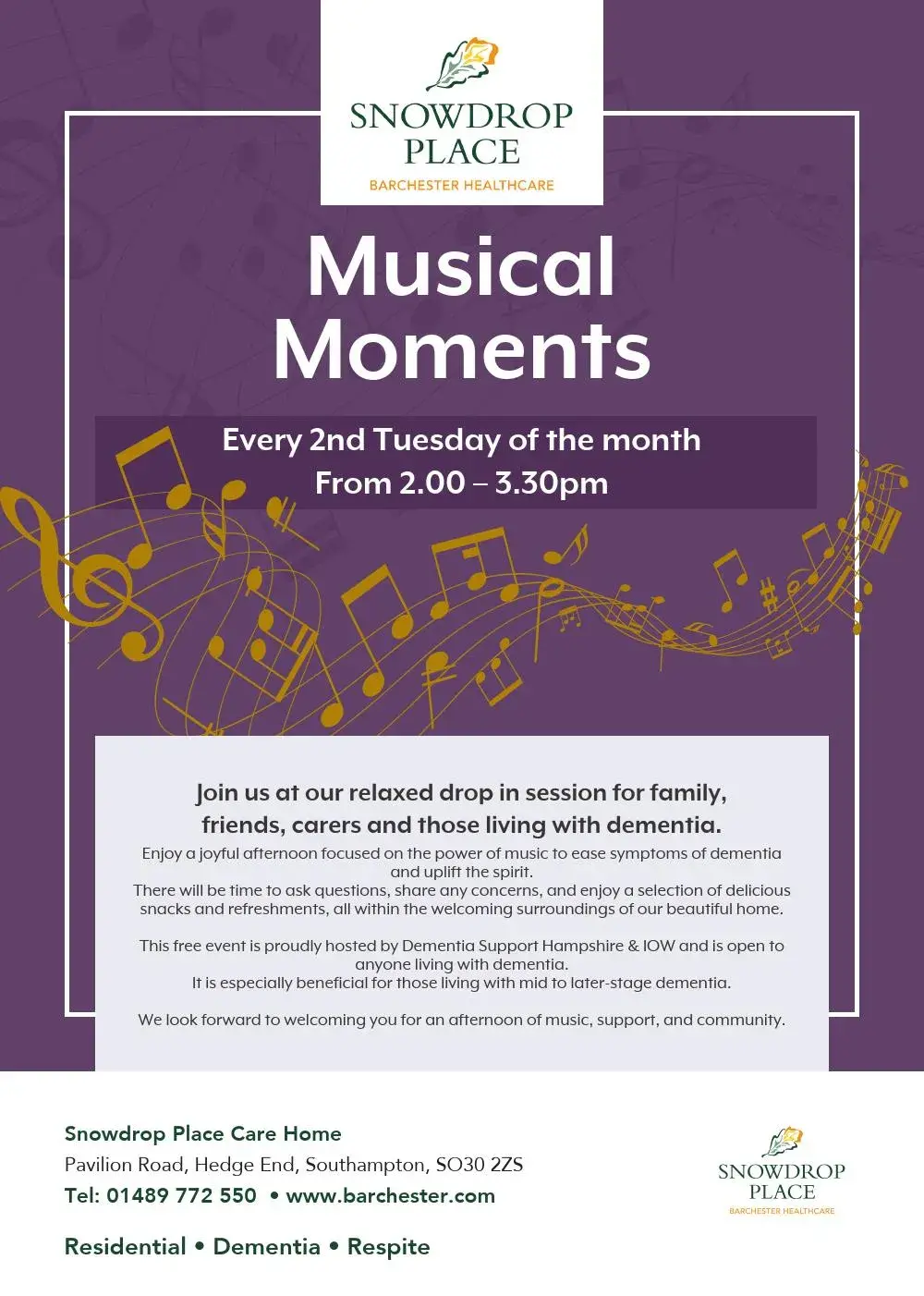 Snowdrop Place Care Home offers Residential care, Dementia care, Respite / Short stay.