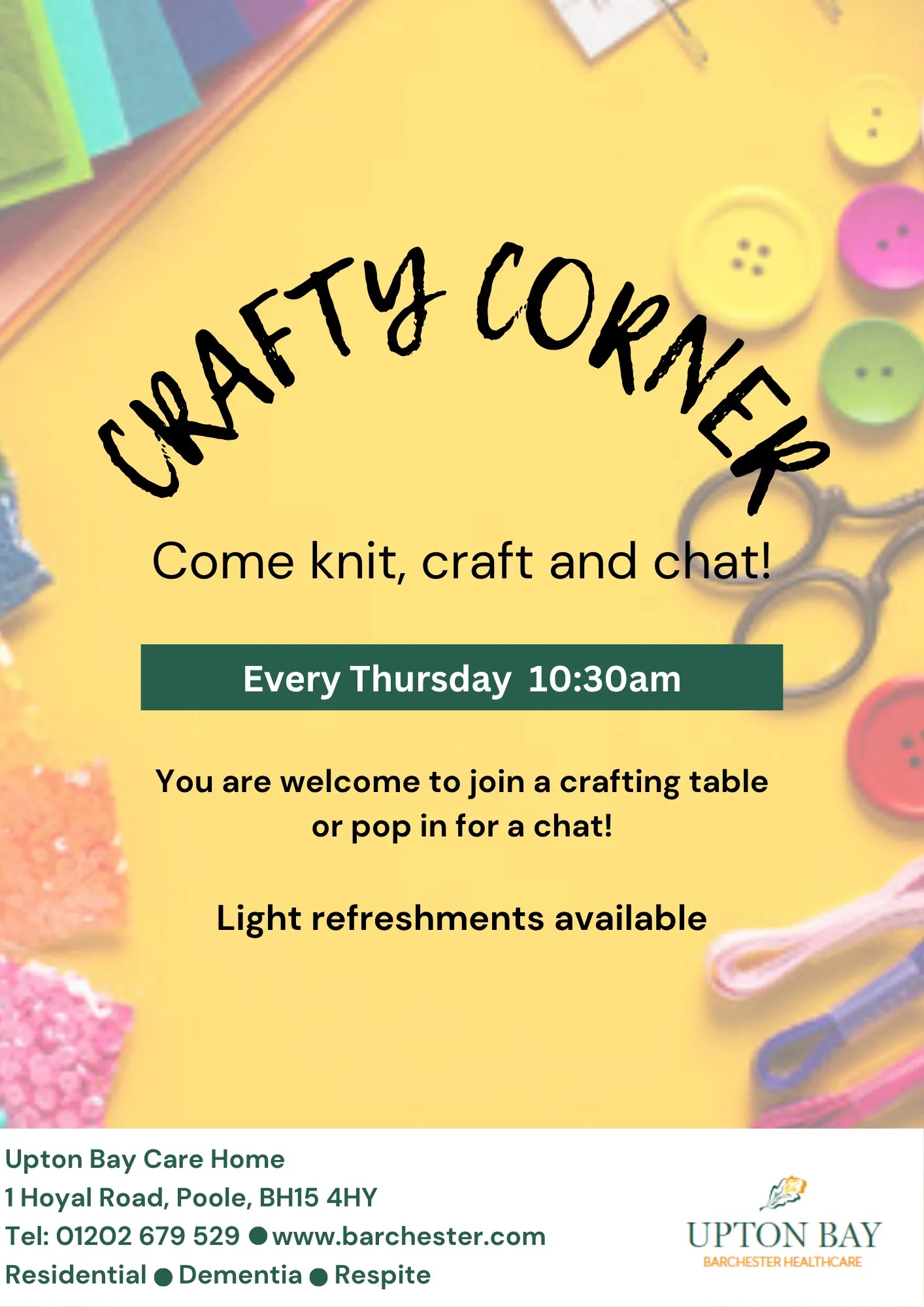 Crafty Corner happens every Thursday at Upton Bay. It's lovely to see the community come together to knit, craft and chat.