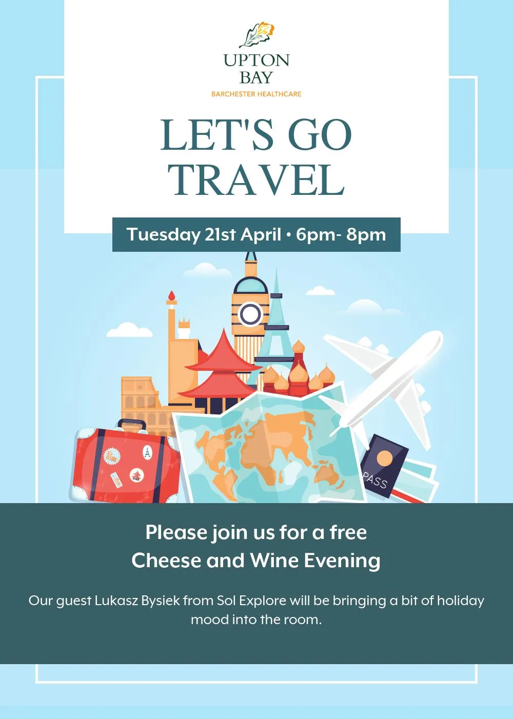 Please join us for a free cheese and wine evening. Our guest Lukasz Bysiek will be bringing a bit of holiday mood into the room. Bookings essential on 01202 679 529