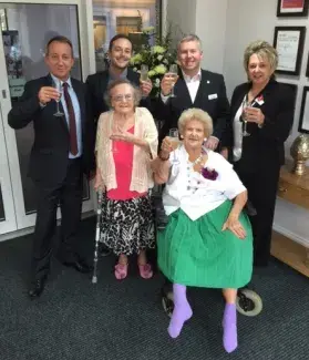 The eagerly awaiting staff at the home greeted June and Maureen with a bouquet of flowers and a bottle of bubbly as they officially moved into the new Barchester care home and everyone toasted the occasion.