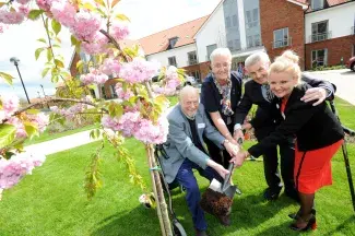 Care home staff and guests were delighted when three local heroes officially opened Burton Waters’ newest care facility, Tennyson WharfCare Home, by planting a memorial tree in the home’s garden on 22nd April.
