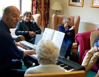 Musician Simon accompanied Nordoff Robbins music therapist Richard Sanderson on one of his weekly visits to the home to find out more about the engaging and beneficial work Nordoff Robbins' music therapists provide.